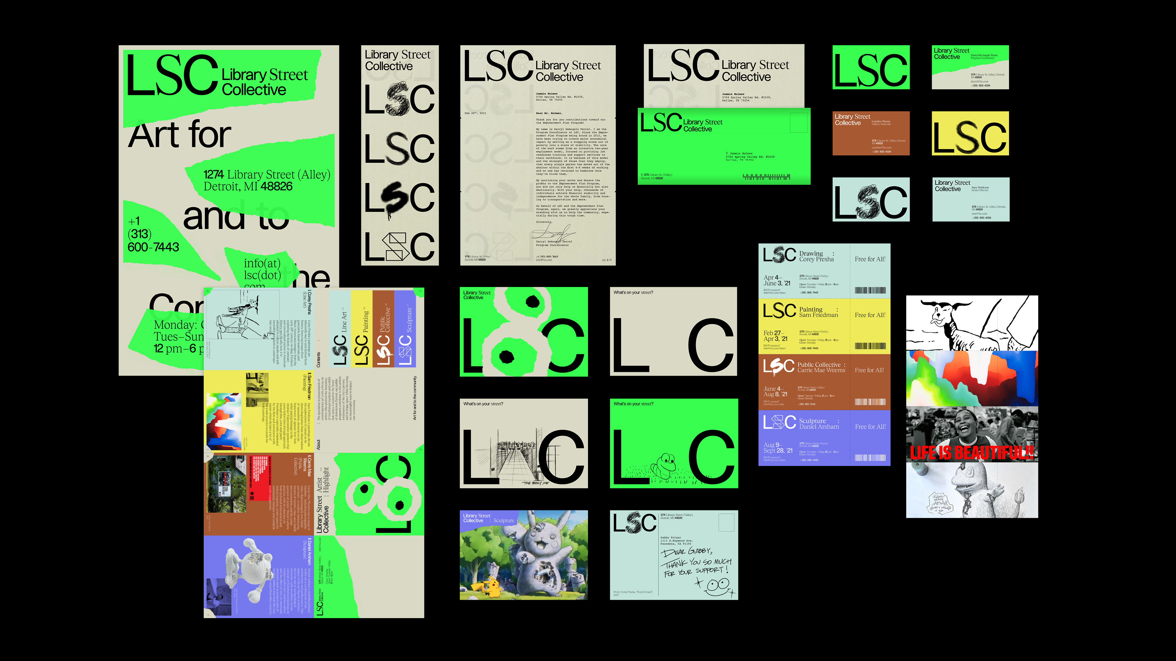 Library Street Collective (LSC) is a contemporary gallery space, located in Downtown Detroit, Michigan. LSC celebrates artists, who push the boundaries of traditional medium and exhibition space within